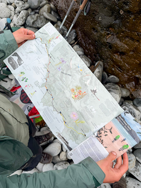 The South Coast Track Wilderness Journal is a foldable one page guide inspired by time spent walking the South Coast Track, bringing together artworks, practical tips, and personal reflections shaped by experiences in this remote, wild landscape.