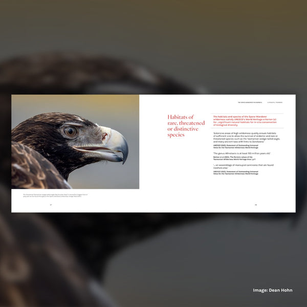 The Spero-Wanderer wilderness demonstrates cultural and natural values consistent with multiple UNESCO World Heritage criteria. Every copy supports the Wilderness Society’s work to protect wild places and advocate for World Heritage protection in Tasmania.