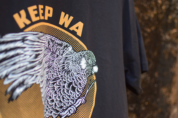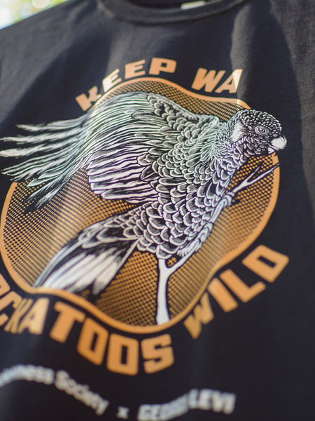 Merch that makes a difference. This t-shirt features artwork spotlighting the iconic Carnaby’s black-cockatoo, one of the 11 threatened species at the centre of the Wilderness Society’s landmark Federal Court case.